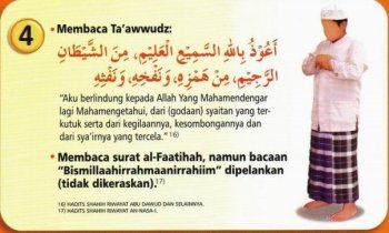 • Membaca surat al-Faatihah, namun, bacaan “Bismillaahirrahmaanirrahiim” dipelankan (tidak dikeraskan). [17]