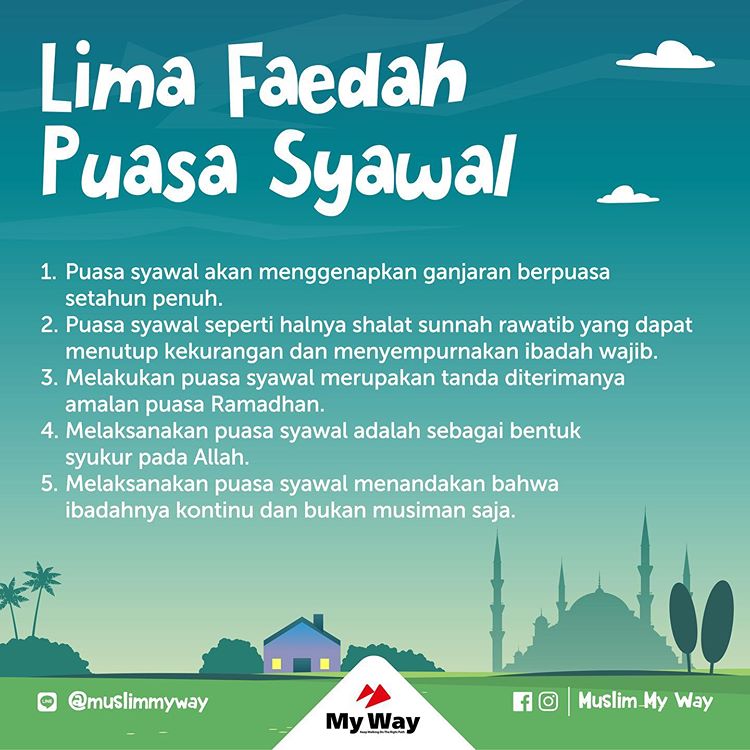 Semoga Allah menerima amalan kita semua di bulan Ramadhan dan memudahkan kita untuk menyempurnakannya dengan melakukan puasa Syawal. Aamiin.