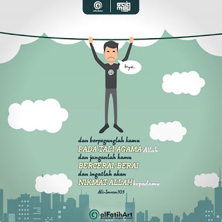 Dan berpeganglah kamu semuanya kepada tali (agama) Allah, dan janganlah kamu bercerai-berai, dan ingatlah akan nikmat Allah kepadamu ketika dahulu (masa Jahiliyah) bermusuh-musuhan, maka Allah mempersatukan hatimu, lalu menjadilah kamu karena nikmat Allah orang-orang yang bersaudara. (QS Ali Imran:103)