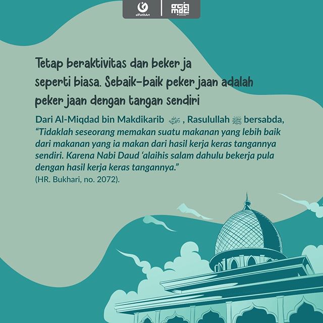 “Tidaklah seseorang memakan suatu makanan yang lebih baik dari makanan yang ia makan dari hasil kerja keras tangannya sendiri. Karena Nabi Daud ‘alaihis salam dahulu bekerja pula dengan hasil kerja keras tangannya.”