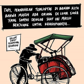 Namun disatu sisi, pernahkah terlintas dibenak kita bahwa masih ada manusia diluar sana yang tak bisa merasakan nikmatnya berkumpul bersama keluarga, yang bingung untuk pulang kerumah karena takut tak bisa membawa apa-apa untuk keluarganya.